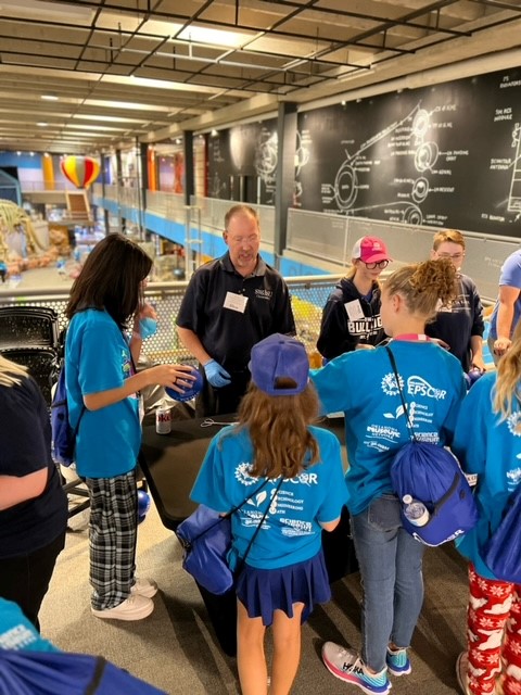 The SWOSU Chemistry booth demonstrated Charles’s Law by submerging balloons in liquid nitrogen then removing the balloons with decreased volume from the doers and letting them re-inflate in front of the students.