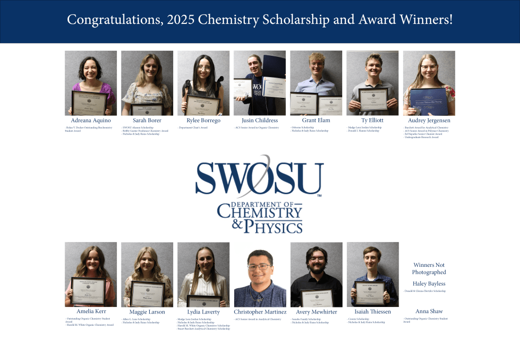 Awarded to Chemistry Majors who have completed at least one Organic Chemistry course at SWOSU